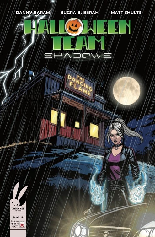 Danny Baram: In Halloween Team: Shadows, I’m really proud that, even though this is a big, blockbuster type of story – we still really take the time to focus on the major emotional beats. Personally, one of my big comic book pet peeves is when you’re reading a big, epic story and the premise is cool … but there’s no real emotional hook to keep you invested. I tried to really keep Halloween Team: Shadows character-centric, even as the world gets bigger, the action gets crazier, and the stakes get higher. On a separate note, I’m very proud – through no contribution of my own – of how great these new issues look, thanks to some amazing art! What’s so cool with Shadows is that we have a brand new main artist, Bugra Berah, who is knocking it out of the park. Bugra has a very classic comic book sort of style – very clean, very bold. And I think that fits the more epic vibe of the new volume well. But, we also have our original artist, Matt Shults, back doing flashback sequences in each issue. And not only is Matt continuing to up his game and turning in some amazing work, but it’s also so great to have that sense of continuity and connective tissue, visually, to Volume 1.